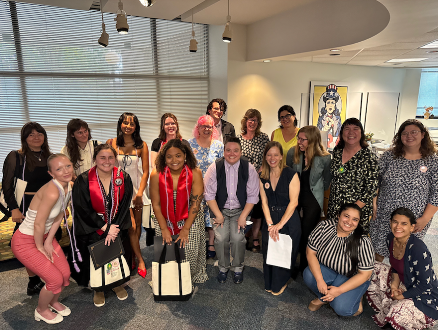 Image: The Institute for Women and Gender Studies proudly celebrates the achievements of our undergraduate class of 2025. Their ambition, innovation, and dedication truly are extraordinary, and we are confident they will be the leaders of our future. Congratulations to Riley Deyo, Zoe Grant, Sophie James, Lilly Kirk, Joseph Mazzola, Dhriti Pentela, Harini Tirumala, and Shannon Tabeek. _________________ We would also love to extend much deserved kudos to all our undergraduate and graduate students achieving amazing things: Undergrad Kudos: Harini Tirumala and Lilly Kirk received honors at the WGS grad ceremony in May. Meagan McColloch interned this spring with Attorney General Chris Carr in spring and interned on Capitol Hill as part of the Honors in Washington Program this summer. Lilly Kirk and Teresa Lu participated in a research trip to New York City as a part of a Mellon-supported project on food scarcity and urban gardens. Grad Kudos: Sophia Flemming was nominated for a 2025 Transfer Advocate Award, given to someone who contributed greatly to the success of a transfer student and made a positive impact on their UGA experience. She was also awarded a Building Southern Intersectional Futures grant for research related to her dissertation, and a WAGG grant for Zines as Black Feminist Praxis. Kathleen Hurlock taught for UGA’s Cortona program and UGA’s Oxford program. She also has a publication titled “Freak Feminism: On Andrea Dworkin” forthcoming in the Cleveland Review of Books. Alexis Lygoumenos taught for UGA’s Oxford program and UGA’s Cortona program. Ms. Lygoumenos was also a recipient of a Building Southern Intersectional Futures grant related to her dissertation work, and presented a talk titled “Stapled Subversion: Zine History and the Epistemology of the Marginalized” at the Oxford Education Research Symposia. Jess Martinez and Vanessa Raditz presented at the 2024 NWSA conference in Detroit.